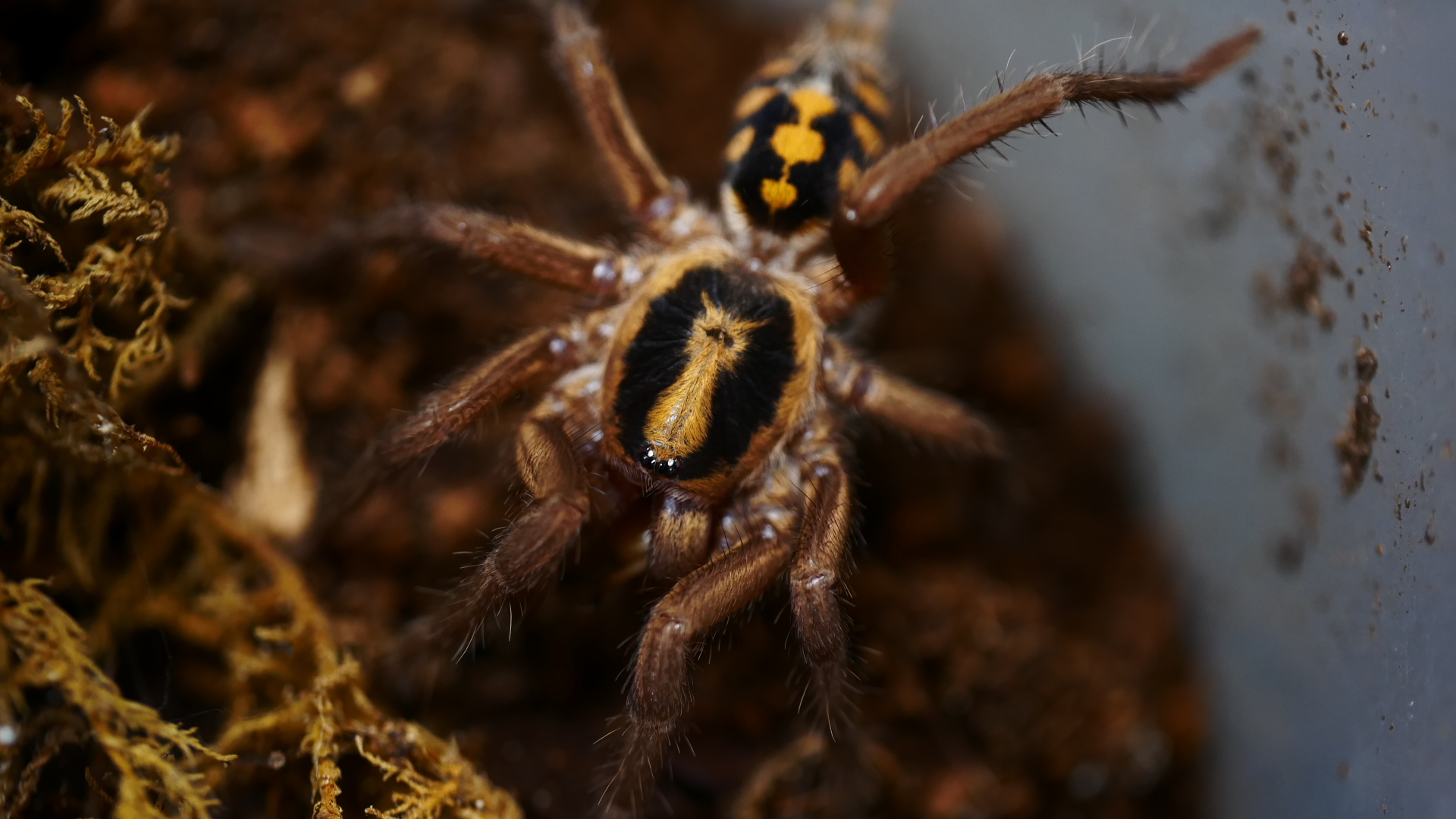 Die meisten Hapalopus Arten sind friedliche, anspruchslose und insgesamt sehr Anfängerfreundliche Spinnen. Charakterristisch für diese Gattung sind konstrastreiche Farbmuster aus schwarz und gelb.